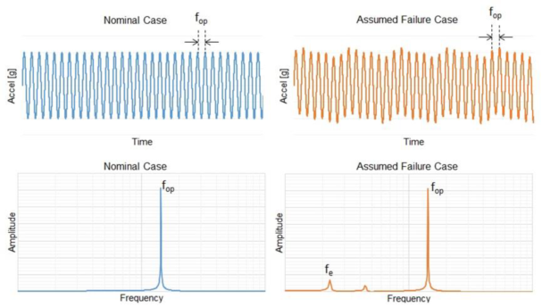 假設(shè)fop為機械系統(tǒng)(比如旋轉(zhuǎn)電機)的工作頻率,fe為系統(tǒng)的錯誤/故障模式頻率(圖3)。在此例中,fe低于fop并且在該圖中顯示,也就是說,由于機身松動,電機正在緩慢振動。對于傳統(tǒng)加速度傳感器,為了檢測這種故障模式,人們需要用MCU/DSP進(jìn)行頻率分析。而MCU/DSP一直保持工作狀態(tài),會導(dǎo)致額外的內(nèi)存空間需求以及更高的功耗。