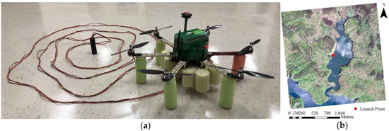 無人機(jī)04 00035 g002 550 圖2. (a)與飛機(jī)集成的傳感器節(jié)點,以及(b)Issaqueena湖的發(fā)射地點。