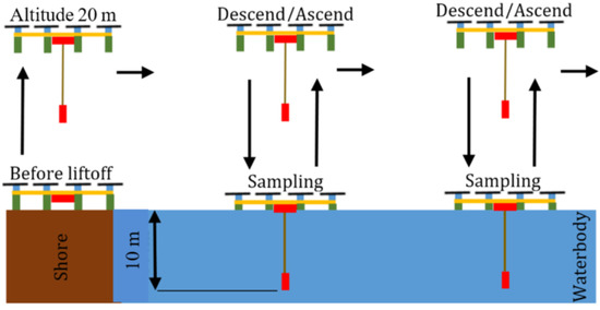 當(dāng)涉及湖泊管理和水質(zhì)監(jiān)測時,無人飛行器(UAV)相對于當(dāng)前的多參數(shù)傳感器和基于浮標(biāo)的系統(tǒng)在水溫分析方面具有優(yōu)勢。無人機(jī)是可移動的,可以輕松地從附近位置部署到水體。最近的研究已經(jīng)利用遙感和無人機(jī)來監(jiān)測水體的表面溫度。熱紅外遙感已被用于實際應(yīng)用中測量河流和湖泊中的地表水溫度[ 15 ]。已經(jīng)研究了基于無人機(jī)的熱紅外測繪,以評估地下水向沿海地區(qū)的排放[ 16 ]。除遙感外,還對集成了溫度傳感器的無人機(jī)進(jìn)行了湖泊中水溫測量的測試[ 17,18 ]。這些基于無人機(jī)的系統(tǒng)將鼠標(biāo)懸停在水面上方時,可以從適用的深度獲取溫度測量值。無人機(jī)懸停在水面上方時進(jìn)行空中測量會增加電池的使用量,從而限制了可以采集的樣本數(shù)量[ 19 ]。無人機(jī)系統(tǒng)依靠靈敏的導(dǎo)航傳感器技術(shù)來固定其在空中的位置。在較低高度進(jìn)行水采樣時,很多事情都會出錯,從而導(dǎo)致墜落事故墜入水中。無人機(jī)的懸停高度取決于風(fēng)速,傳感器校準(zhǔn)和有效載荷擺動運動。這些因素阻礙了水溫測量的精確深度[ 20]。因此,需要更可靠的基于無人機(jī)的水溫測量方法來提供水柱溫度數(shù)據(jù)。
