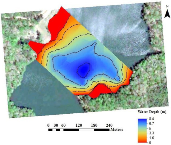 無人機(jī)04 00035 g005 550 圖5. 任務(wù)計劃范圍內(nèi)的Issaqueena湖水深圖。