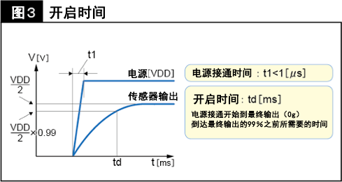 「開啟時(shí)間」是指接通電源后,在元件變?yōu)镺N狀態(tài)之前所需耗費(fèi)的時(shí)間。圖3即是用圖表形式來表示到達(dá)最終輸出的99%之前所需要的時(shí)間。
