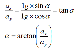 這時傾角可以通過計算X軸和Y軸比值的反正切來得到: