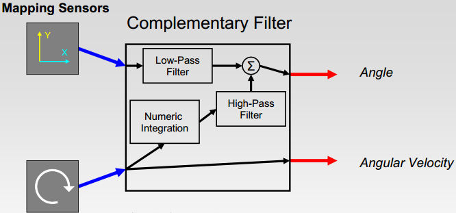 常用的解決方法是結(jié)合加速度計和陀螺儀各自的優(yōu)勢進行互補濾波(陀螺儀:動態(tài)特性好,積分計算姿態(tài)有累積誤差;加速度計:動態(tài)響應(yīng)差,但沒有累積誤差)。它們在頻域上特性互補,可以采用互補濾波提高測量精度和系統(tǒng)的動態(tài)性能。另一種常見的方法是采用卡爾曼濾波。