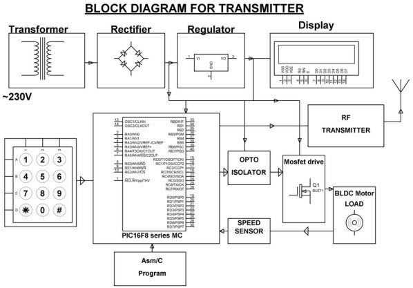 基于PIC微控制器的項目,使用無線技術(shù)在工業(yè)中實現(xiàn)多個電機(jī)的速度同步是速度傳感器的典型應(yīng)用。行業(yè)中的多種電動機(jī)之一被認(rèn)為是充當(dāng)發(fā)送器的主電動機(jī),其余電動機(jī)充當(dāng)接收器,它們將跟隨主電動機(jī)的速度。本項目中使用的主電機(jī)和接收電機(jī)是BLDC電機(jī),它們是通過PWM控制和射頻無線通信模式進(jìn)行控制的。