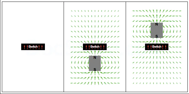 這些開關(guān)的操作通常取決于磁場強(qiáng)度,磁場方向和設(shè)備公差。在大多數(shù)單極開關(guān)中,磁場需要垂直指向封裝的表面。