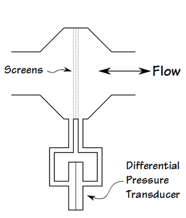 注意連接到壓力傳感器的兩個(gè)端口,以測量沿管道的壓力差。