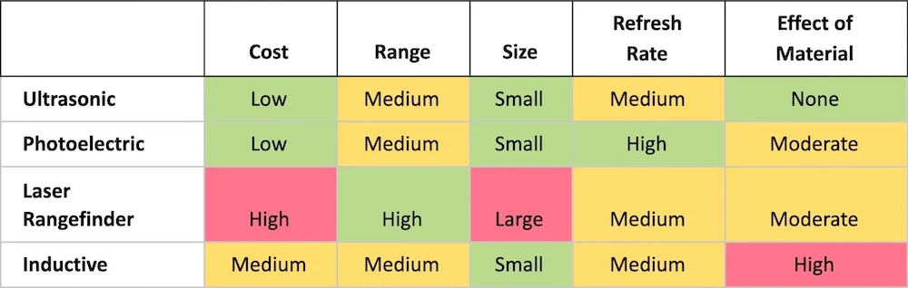 利用電磁波束而不是聲波,激光測距儀傳感器的工作原理與超聲波傳感器相似。雖然近年來這項技術(shù)在經(jīng)濟上變得更加可行,但與超聲波和其他技術(shù)相比,它仍然是一個更昂貴的選擇。