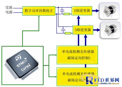 圖1:STM32F103HD可以同時(shí)處理雙電機(jī)控制和數(shù)字PF