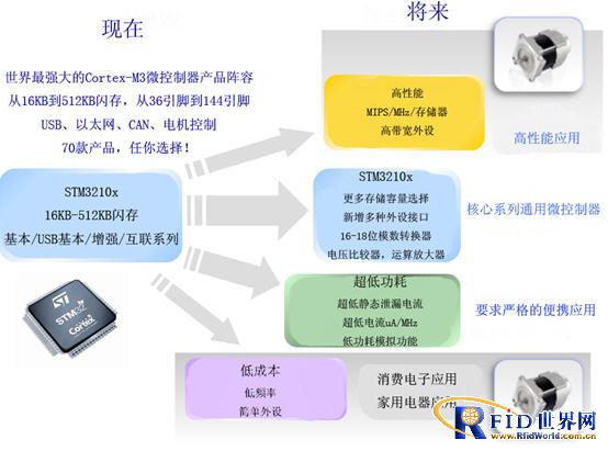 從功率開關(guān)分立器件,到復(fù)雜的系統(tǒng)芯片,意法半導(dǎo)體承諾以其獨(dú)有的產(chǎn)品組合長(zhǎng)期支持電機(jī)控制市場(chǎng)。STM32微控制器產(chǎn)品線將繼續(xù)沿四個(gè)新方向部署,如圖3所示,其中兩個(gè)方向適用于電機(jī)控制。第一個(gè)產(chǎn)品線將面向低成本市場(chǎng),開發(fā)低端的16位電機(jī)控制微控制器。另一個(gè)產(chǎn)品線以高性能為訴求,面向需要更高處理性能、更大存儲(chǔ)容量和高帶寬接口的應(yīng)用。如此寬廣的產(chǎn)品組合結(jié)合Cortex-M3內(nèi)核,勢(shì)必確立STM32架構(gòu)適用于現(xiàn)在和未來(lái)電機(jī)驅(qū)動(dòng)的多功能性。