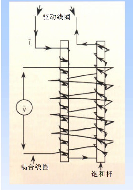 磁通門(圖 2),同樣基于法拉第定律,通常是用兩個(gè)鐵磁材料制成的桿,但也可以是用一次或二次繞組繞成的環(huán)或圈。這兩個(gè)桿用一次繞組纏繞,以相反方向產(chǎn)生驅(qū)動(dòng)磁場(chǎng)。頻率在驅(qū)f 的交流電在一次繞組中流動(dòng)動(dòng),在磁場(chǎng)的作用下兩個(gè)桿的磁化作用處于相反方面。二次繞組測(cè)量。在未施加外部磁場(chǎng)時(shí),假定兩個(gè)桿和一次線圈是相同的,則在二次線圈里的凈磁通量為零。這樣在此線圈中就不會(huì)有信號(hào)產(chǎn)生。當(dāng)沿著桿的軸線方向施加一個(gè)外部磁場(chǎng)時(shí),其中的一個(gè)桿將先于另一個(gè)桿磁性飽和。磁通門的輸出是驅(qū)動(dòng)頻率f的第二諧波。施加一個(gè)小磁場(chǎng)時(shí),第二諧波的波幅與施加的磁場(chǎng)成正比!