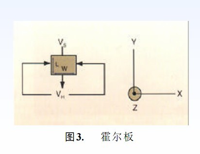 圖 3 中所示為導(dǎo)電材料的矩形薄板,沿Y軸施加了一個(gè)電壓VS,在板的霍垂直方向施加了一個(gè)磁場(chǎng) B(沿 Z 軸),霍爾電壓VH由下式求得VH= uH(W/L)BVs 其中uH是霍爾遷移,W是霍爾板的寬度,L 是長(zhǎng)度! ∮捎诼鍋銎澚ψ饔迷谟脤(dǎo)電材料制成的電荷載體上而產(chǎn)生的霍爾效應(yīng)等于:F=q(vB) 其中 q 是電荷載體上的電荷,v 是電荷載體的速度,B 是磁場(chǎng),力使電流變形,并將其擠向?qū)щ姲宓囊粋?cè)。這造成 X 軸上的等勢(shì)線變,形導(dǎo)致產(chǎn)生霍爾電壓。如果霍爾板的長(zhǎng)度遠(yuǎn)大于寬度,則霍爾電磁場(chǎng)與洛侖茲力相平衡。電流變成與 Y軸平行。最實(shí)用的半導(dǎo)體霍爾元件一般來(lái)說(shuō)是正方形。此時(shí)電流相對(duì)于勵(lì)磁電壓有一個(gè)角度。