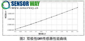 用于線性磁場(chǎng)測(cè)量的GMR傳感器應(yīng)具有良好的線性度,可測(cè)量正反兩個(gè)方向的磁場(chǎng),因此,在測(cè)試芯片的選擇上可選擇雙極性的GMR傳感器直接進(jìn)行測(cè)試或選擇單極性的GMR傳感器對(duì)其進(jìn)行偏置處理,將其零點(diǎn)抬高。