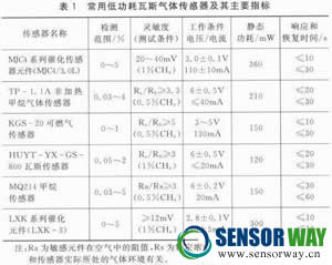 表1列出了目前常用低功耗瓦斯傳感元件及其主要指標(biāo)。從表中可以看出,常用低功耗瓦斯傳感器的功耗都在100mW以上,這對于由電池供電的無線傳感器節(jié)點來說是非常不利的。而且表中所列傳感元件都有一定的響應(yīng)時間,即傳感元件供電后,需要等待其響應(yīng)一段時間,才能正確地反映瓦斯?jié)舛刃畔。較長的響應(yīng)時間限制了無線瓦斯傳感器節(jié)點每次采集數(shù)據(jù)時的工作時間不能太短。例如,TP-1.1A非加熱甲烷氣體傳感器的響應(yīng)時間接近20 s.如果瓦斯傳感器節(jié)點采用該傳感元件,當(dāng)其采集一次數(shù)據(jù)時,從給傳感器供電開始,前20 s采集數(shù)據(jù)是沒有意義的,因為這時傳感元件處于響應(yīng)階段,其電壓值不能準(zhǔn)確地反映實際瓦斯?jié)舛刃畔。因此每采集一次?shù)據(jù),給傳感元件供電的時間至少持續(xù)20 s以上。對于如此高功耗的傳感元件來說,采集一次數(shù)據(jù)所消耗的能量是非常巨大的。這使得所設(shè)計的無線瓦斯傳感器節(jié)點的工作時間過短,以致不能達(dá)到實用化要求。