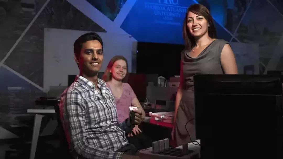 左起為博士生 Murtadha D. Hssayeni(手持傳感器),計算機科學(xué)專業(yè)的 Lillian Boettcher,以及 Behnaz Ghoraani 助教。(圖自:FAU / Alex Dolce 攝,via New Atlas)