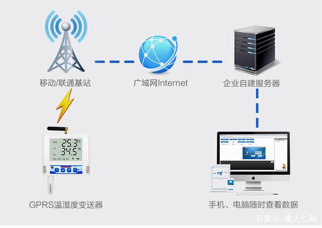 基于GPRS傳輸?shù)臏貪穸葌鞲衅,只需一張移動或?lián)通的SIM卡,就可以通過網(wǎng)絡基站將采集的溫濕度數(shù)據(jù)上傳到服務器,GPRS通訊月流量小于30M。