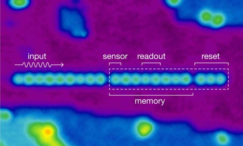 為了研究這些快速振蕩,代爾夫特理工大學(xué)的研究人員開發(fā)了一種僅由11個(gè)原子組成的微小裝置。它配備有天線,讀取功能,復(fù)位按鈕和存儲(chǔ)測(cè)量結(jié)果的存儲(chǔ)單元。本發(fā)明的中心思想是設(shè)備立即檢測(cè)通過的電磁波并記住該信息。研究領(lǐng)導(dǎo)者桑德·奧特(Sander Otte)解釋說:“將其與鼠標(biāo)陷阱進(jìn)行比較!笆髽(biāo)通常太快又太小,無法用手捕獲。但是鼠標(biāo)陷阱的反應(yīng)非常迅速,然后將鼠標(biāo)固定在適當(dāng)?shù)奈恢!?/p>