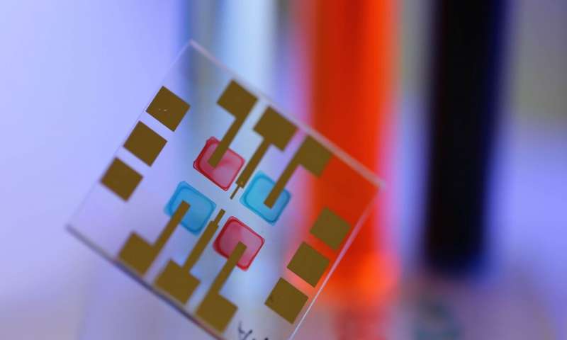 通過使用半導(dǎo)體墨水進(jìn)行噴墨打印而制成的顏色選擇有機光傳感器。圖片提供:KIT的Noah Strobel
