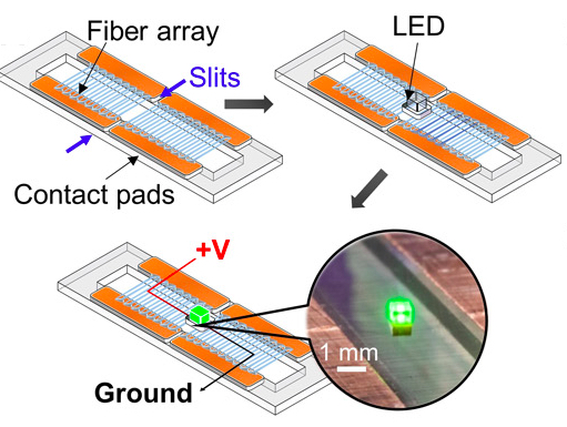 研究人員說,借助IFP能夠?qū)⒐饫w直接制造到電路上,他們能夠利用光纖陣列的功能優(yōu)勢來探索IFP工藝所提供的新型電路架構。即,此過程為3D“浮動電子體系結構”的概念打開了大門,該體系結構將有機和無機纖維??材料合并到同一透明導電網(wǎng)絡中。