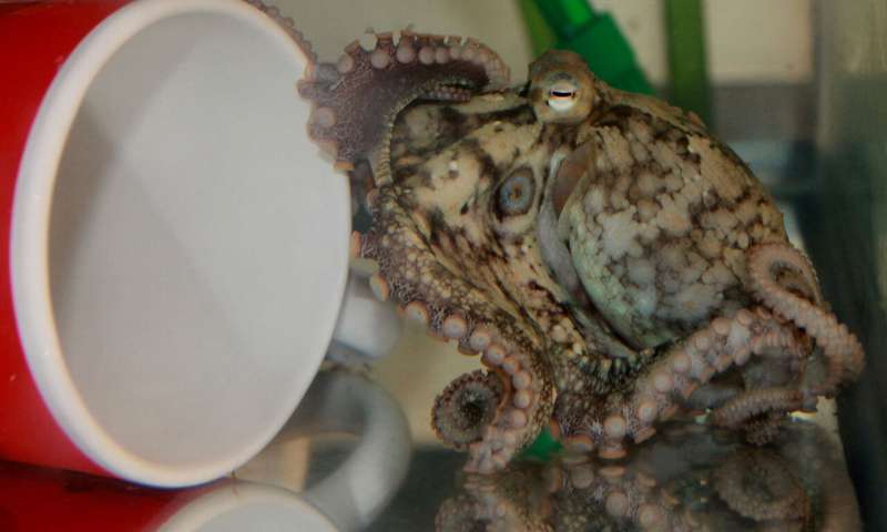 接觸杯子的章魚(yú)。圖片來(lái)源:Lena van Giesen
