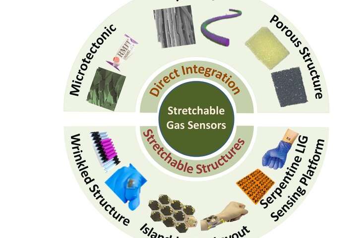 賓夕法尼亞州立大學(xué)的研究人員說,對納米材料,傳感器設(shè)計和制造方法的新理解可以幫助發(fā)展可拉伸,可穿戴的氣體傳感器,該傳感器可監(jiān)測人體中的氣態(tài)生物標(biāo)記以及暴露環(huán)境中的有毒氣體。