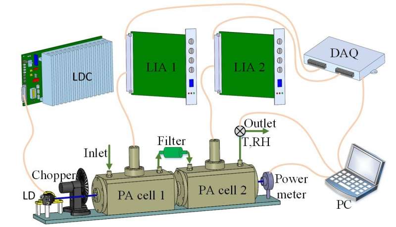 研究小組成員劉Kun教授解釋說:“該P(yáng)AS(D-PAS)基于443 nm激光二極管! “通過優(yōu)化聲諧振器的結(jié)構(gòu),我們實(shí)現(xiàn)了在線測量氣溶膠吸收和NO 2的高靈敏度和大流量。”