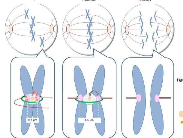 為了防止這種染色體異常,細(xì)胞通過張力傳感器精確地控制染色體向新生細(xì)胞的分布,該傳感器定位被稱為著絲粒的復(fù)制染色體的中心區(qū)域,并檢測附著的微管是否正在對染色體施加正確的力。動粒,一種位于著絲粒的蛋白質(zhì)復(fù)合物。