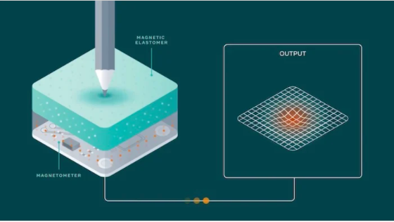 根據(jù)該出版物,當(dāng)這種材料變形時(shí),它會(huì)導(dǎo)致其磁場(chǎng)發(fā)生變化,附近的磁力計(jì)可以察覺(jué)到這種變化。然后,系統(tǒng)使用基于人工智能的技術(shù)將這些數(shù)據(jù)解釋為相關(guān)信息,例如接觸位置和施加的力。