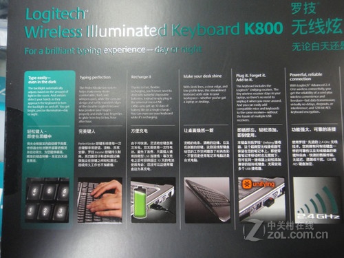 羅技K800傳承羅技家族的最優(yōu)秀血統(tǒng),Incurve枕頭按鍵、“優(yōu)聯(lián)”接收器、剪刀腳的支架應(yīng)有盡有。除此之外為了解決無線鍵盤尤其是無線背光鍵盤的耗電量大這個(gè)缺點(diǎn),羅技K800還添加了環(huán)境光源傳感器和接近傳感器這兩個(gè)非常實(shí)用又吸引眼球的功能。