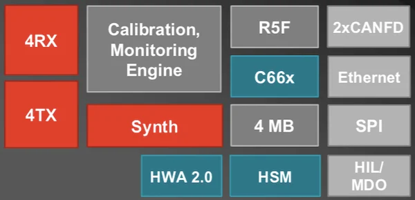 總之,一些重要的硬件產(chǎn)品包括 4 個(gè) Rx 和 Tx 通道、一個(gè)雷達(dá)預(yù)處理硬件加速器塊、4 MB 片上存儲(chǔ)器以及一個(gè)內(nèi)置校準(zhǔn)和監(jiān)控引擎。由于這些改進(jìn),TI 表示與市場上的其他解決方案相比,AWR2944 的雷達(dá)分辨率提高了 33%,雷達(dá)范圍增加了 40%。增加的雷達(dá)范圍歸因于基于多普勒分多址 (DDMA) 的信號(hào)處理,這提高了 SoC 從更遠(yuǎn)的地方檢測迎面而來的車輛的能力。