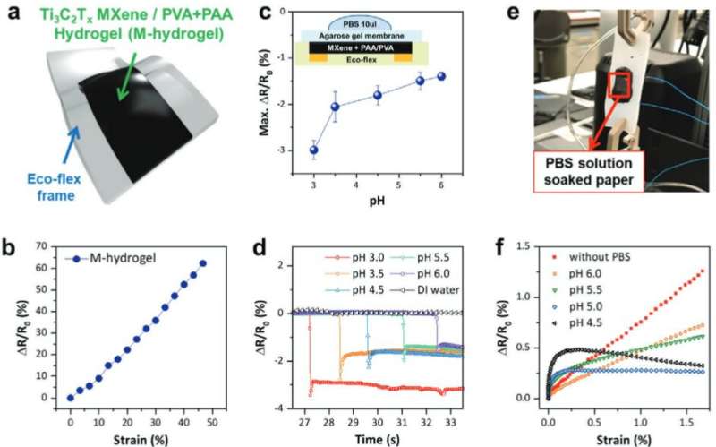 使用新型 MXene水凝膠化合物開(kāi)發(fā)的原型可穿戴傳感器能夠通過(guò)隨著機(jī)械應(yīng)力的增加產(chǎn)生不同的電阻模式來(lái)跟蹤肌肉運(yùn)動(dòng)。當(dāng)傳感器暴露于酸性或堿性溶液形式的額外離子時(shí),這些模式會(huì)立即發(fā)生變化。
