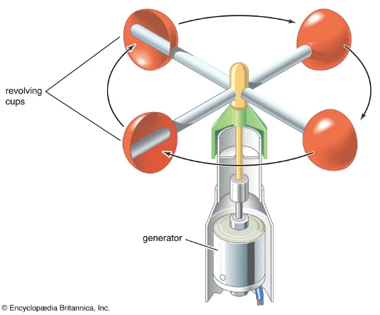 轉(zhuǎn)杯式電子風速計示意圖。圖片由大英百科全書提供