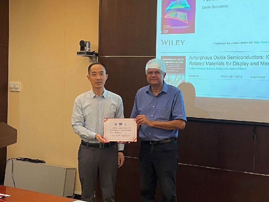 會(huì)上,人事處處長(zhǎng)王雷向Arokia Nathan教授頒發(fā)了“中國(guó)科學(xué)院微電子研究所客座研究員”證書(shū)。