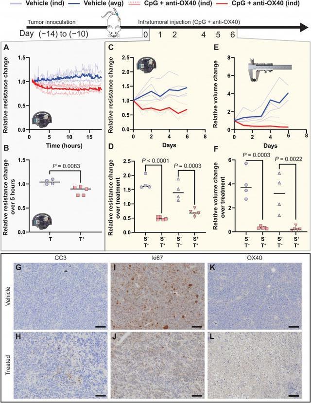 該研究的第一作者、斯坦福大學(xué)工程學(xué)院化學(xué)工程系K.K. Lee教授鮑振南實(shí)驗(yàn)室最近的一名博士后Alex Abramson說(shuō):"在某些情況下,被觀察的腫瘤必須用卡尺手工測(cè)量。"但使用金屬鉗子般的卡尺來(lái)測(cè)量軟組織并不理想,而且放射學(xué)方法不能提供實(shí)時(shí)評(píng)估所需的那種連續(xù)數(shù)據(jù)。FAST可以在分鐘級(jí)檢測(cè)腫瘤體積的變化,而卡尺和生物發(fā)光測(cè)量往往需要長(zhǎng)達(dá)數(shù)周的觀察期才能讀出腫瘤尺寸的變化。
