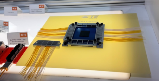 TE的OTB布線系統(tǒng)由TE的OIF兼容協(xié)同封裝銅模塊與TE的OIF兼容microLGA細(xì)間距插座技術(shù)相匹配組成。這種聯(lián)合封裝的銅模塊和插座解決方案將很快由OIF作為行業(yè)標(biāo)準(zhǔn)解決方案發(fā)布,提供多達(dá)32個(gè)通道,每個(gè)通道的速度為112 Gbps,每個(gè)模塊的總帶寬為3.2 Tbps,有助于實(shí)現(xiàn)網(wǎng)絡(luò)交換、人工智能/機(jī)器學(xué)習(xí)和計(jì)算中的各種下一代應(yīng)用。在此演示中,共封裝銅模塊通過(guò)電纜連接到四倍小尺寸可插雙密度 (QSFP-DD) OTB的4個(gè)端口,但也可以連接到背板連接器等其他應(yīng)用。