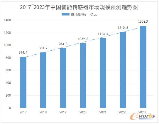 從市場運行情況來看,2022年我國智能傳感器市場規(guī)?焖僭鲩L。據(jù)中國信通院新的數(shù)據(jù)統(tǒng)計,預計到2023年中國智能傳感器行業(yè)市場規(guī)模將達1308.3億元。