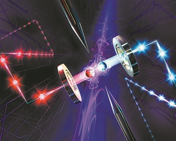為了遠距離傳輸量子信息,需要量子中繼器來遠距離分布糾纏。圖片來源:哈拉爾德·里奇/因斯布魯克大學(xué)
