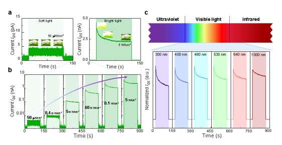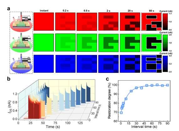 更重要的是,該設(shè)備可以表現(xiàn)出良好的人眼適應(yīng)行為,包括寬帶光敏圖像適應(yīng)(從紫外到近紅外)、近完全光敏恢復(99.6%)和協(xié)同視覺適應(yīng),鼓勵智能光傳感器和機器視覺系統(tǒng)的進步。