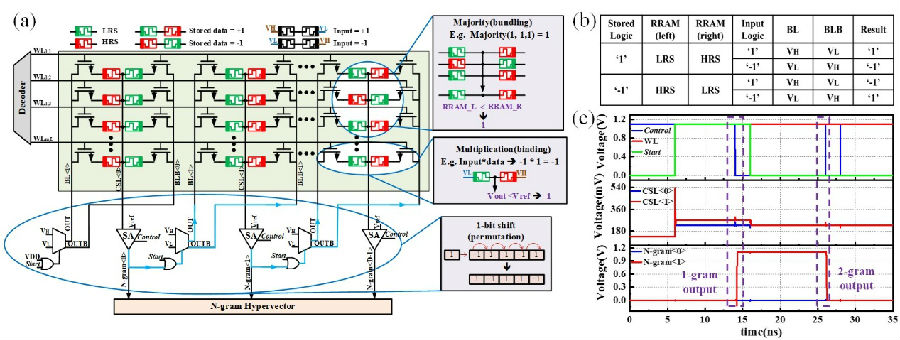 圖2:存內(nèi)高維計算編碼器工作流程、真值表和編碼電路瞬態(tài)響應(yīng)