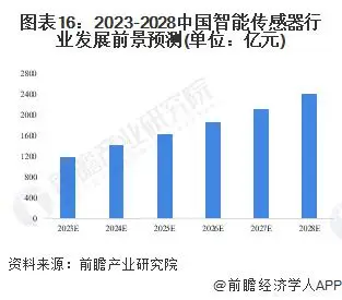 根據(jù)SDI發(fā)布的《2022年中國智能傳感器十大園區(qū)報告》,中國智能傳感器市場規(guī)模在近幾年持續(xù)增長。從2019年的783.9億元上升至2021年的1020.4億元,2022年預計將達1191.8億元,2023年預計將達1425.4億元。政策的出臺進一步明確了智能傳感器產(chǎn)業(yè)發(fā)展的方向和路徑。智能傳感器作為物聯(lián)網(wǎng)整個構架體系的核心,具有廣闊的前景,預計到2028年,中國智能傳感器市場規(guī)模有望達到2400億元,年均復合增長率約為14%。