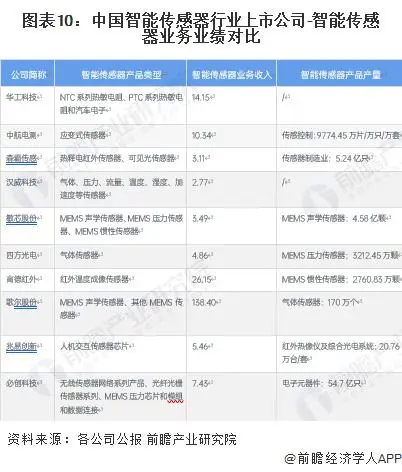 智能傳感器行業(yè)上市公司智能傳感器業(yè)務業(yè)績對比