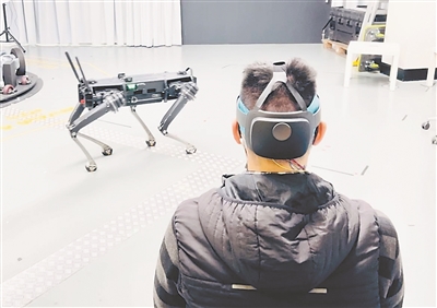研究小組將8個這樣的傳感器整合到一個彈性頭帶中,并固定在枕骨區(qū)域。當(dāng)與顯示視覺提示的增強(qiáng)現(xiàn)實耳機(jī)相結(jié)合時,電極可檢測到正在觀看的提示,然后與計算機(jī)合作,將信號解析為控制四條腿機(jī)器人運動的命令,該過程完全解放雙手。