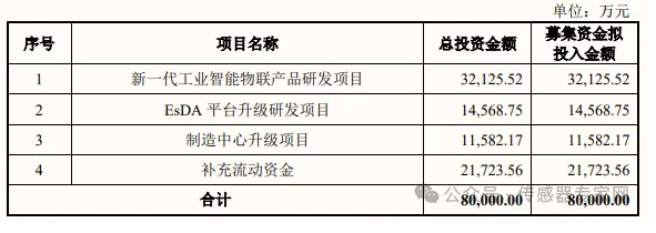 本次IPO中,致遠電子擬向社會公眾公開 發(fā)行人民幣普通股不超過 2,000.00 萬股,擬募集資金為8億元,將投入到新一代工業(yè)智能物聯(lián)產(chǎn)品研發(fā)項目 、EsDA 平臺升級研發(fā)項目、制造中心升級項目以及補充流動資金。