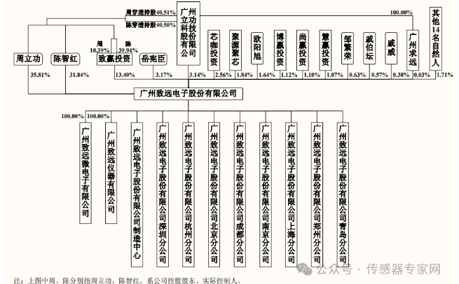 據(jù)招股書股權(quán)結(jié)構(gòu)顯示,目前致遠電子實控人為周立功、陳智紅,二人合計占據(jù),持有發(fā)行人 76.96%的股權(quán),為發(fā)行人控股 股東、實際控制人,致贏投資、立功科技、廣州求遠系實際控制人的一致行動人。