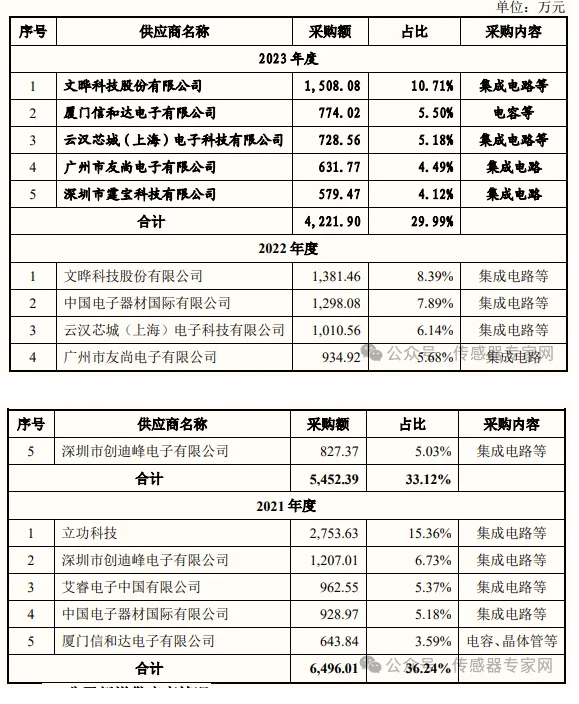 致遠電子主要采購產(chǎn)品為集成電路,前五大供應(yīng)商涵蓋多家知名電子元件分銷商,包括文曄科技、信和達電子、云漢芯城、中電器材(中電港)等。