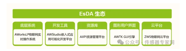 值得一提的是,致遠電子是國內(nèi)少數(shù)自建物聯(lián)網(wǎng)操作系統(tǒng)及開發(fā)生態(tài)的中國物聯(lián)網(wǎng)企業(yè),其物聯(lián)網(wǎng)生態(tài)稱為EsDA生態(tài)(Embeded system Design Automation,嵌入式系統(tǒng)設(shè)計自動化技術(shù)生態(tài)),包括AWorksLP 物聯(lián)網(wǎng)實時操作系 統(tǒng)、AWStudio 嵌入式應(yīng)用可視化開發(fā)平臺、AXPI 資源管理平臺、AWTK GUI 引擎及ZWS物聯(lián)網(wǎng)云平臺等自研技術(shù)平臺: