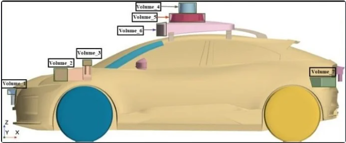 為前傳感器、前側(cè)傳感器、車頂傳感器和后側(cè)傳感器設(shè)置了變形控制體,這些傳感器對空氣動力阻力系數(shù)有顯著影響。通過調(diào)整這些控制體上的控制點(diǎn),可以改變傳感器的形狀。 圖片來源:王逸平