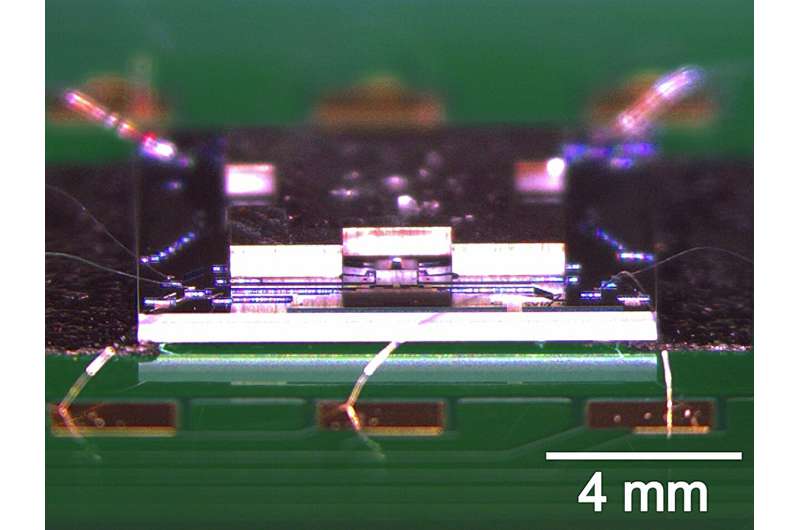封裝好的 MEMS-TMPhC 設(shè)備與印刷電路板進(jìn)行引線鍵合的側(cè)視圖。圖片來源:《自然・光子學(xué)》(2025 年)。https://doi.org/10.1038/s41566-025-01650-z