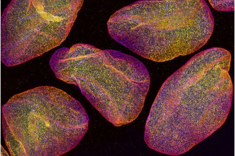 用共聚焦顯微鏡拍攝的熒光標記的細胞核。圖像大小約為 0.03 毫米 ×0.02 毫米。圖片來源:蒂穆・伊哈萊寧