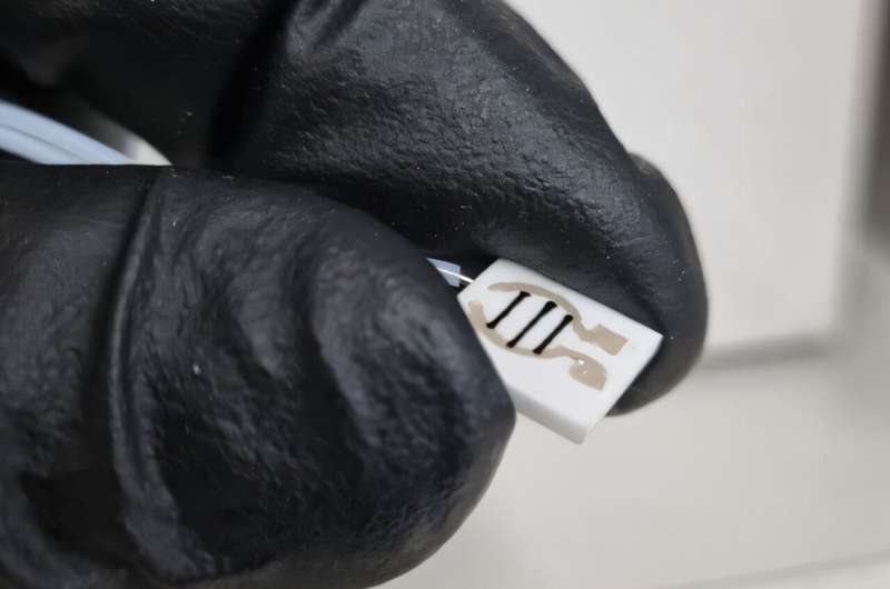這種使用 3D 打印導(dǎo)電油墨制成的氣體傳感器,可幫助快速輕松地診斷甲醇中毒。圖片來(lái)源:卡姆魯爾・哈桑