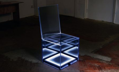 這把被設(shè)計師賦予了“隱身”功能的座椅將于2月份在英國皇家藝術(shù)學(xué)院展出,它向人們展示了一種依附于意識形態(tài)的設(shè)計理念。椅子的“隱身”功能依靠貼有單向鏡膜的鏡面有機玻璃實現(xiàn),這些有機玻璃可以有效地反射出周圍環(huán)境,讓椅子看上去如同懸空一樣。除此之外,設(shè)計者還在座椅內(nèi)部加裝了超聲傳感器與LED照明燈,當(dāng)傳感器探測到有人靠近時,便向LED燈發(fā)出脈沖信號,燈便會如心跳般閃爍,與此同時,座椅下表面會逐漸變透明,邊緣也會泛起藍(lán)光。當(dāng)傳感器“確認(rèn)”有人要上座時,LED燈才會停止閃爍。高科技的支持和新穎的設(shè)計讓這款座椅極具夢幻效果,十分吸引人。
